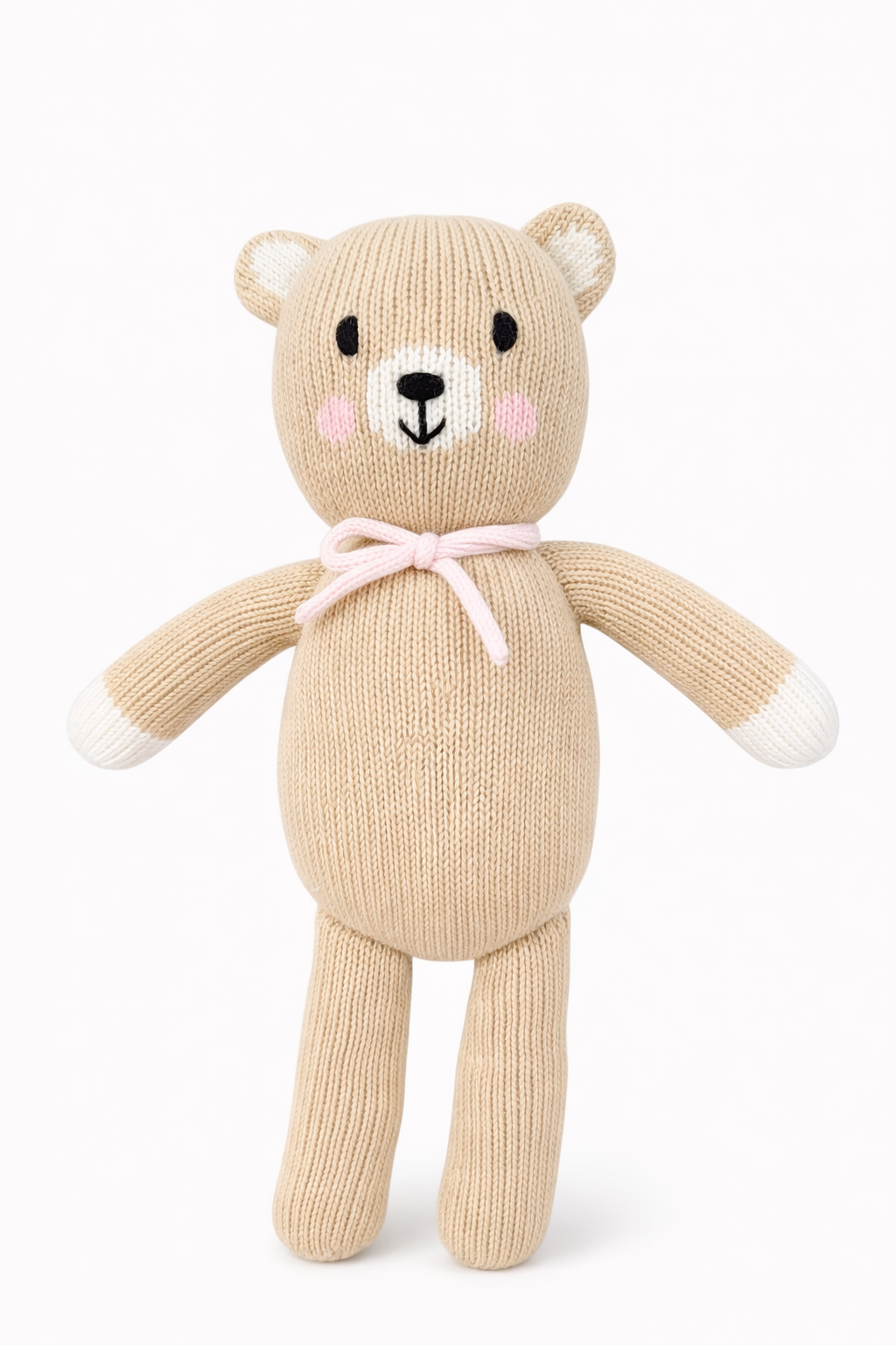 Available in four soft, classic shades — Pink, Blue, Ivory, and Sage — each bear features delicate knit details and a sweet bow for a timeless look parents love.